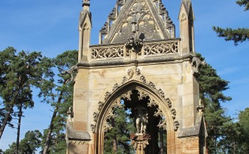 Hubertova trojboká kaple je nejmladším dílem romantismu v Lednicko-valtickém areálu. Byla postavena v roce 1855 Janem Heidrichem podle plánů Jiřího Wingelmüllera jako goticky se tvářící stavba na počest svatého Huberta, patrona myslivců a střelců, řezníků a kožešíníků.